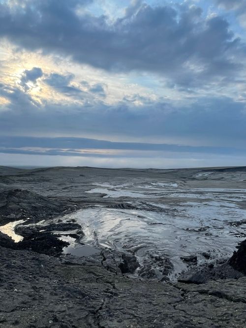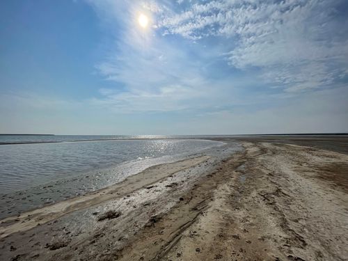 At a point roughly 10km north of Nelson Head, where I had hoped to be able to see across the point to the seas and yet be out of range of the bears, the heavy fog prevented any view at all. I turned and headed north.